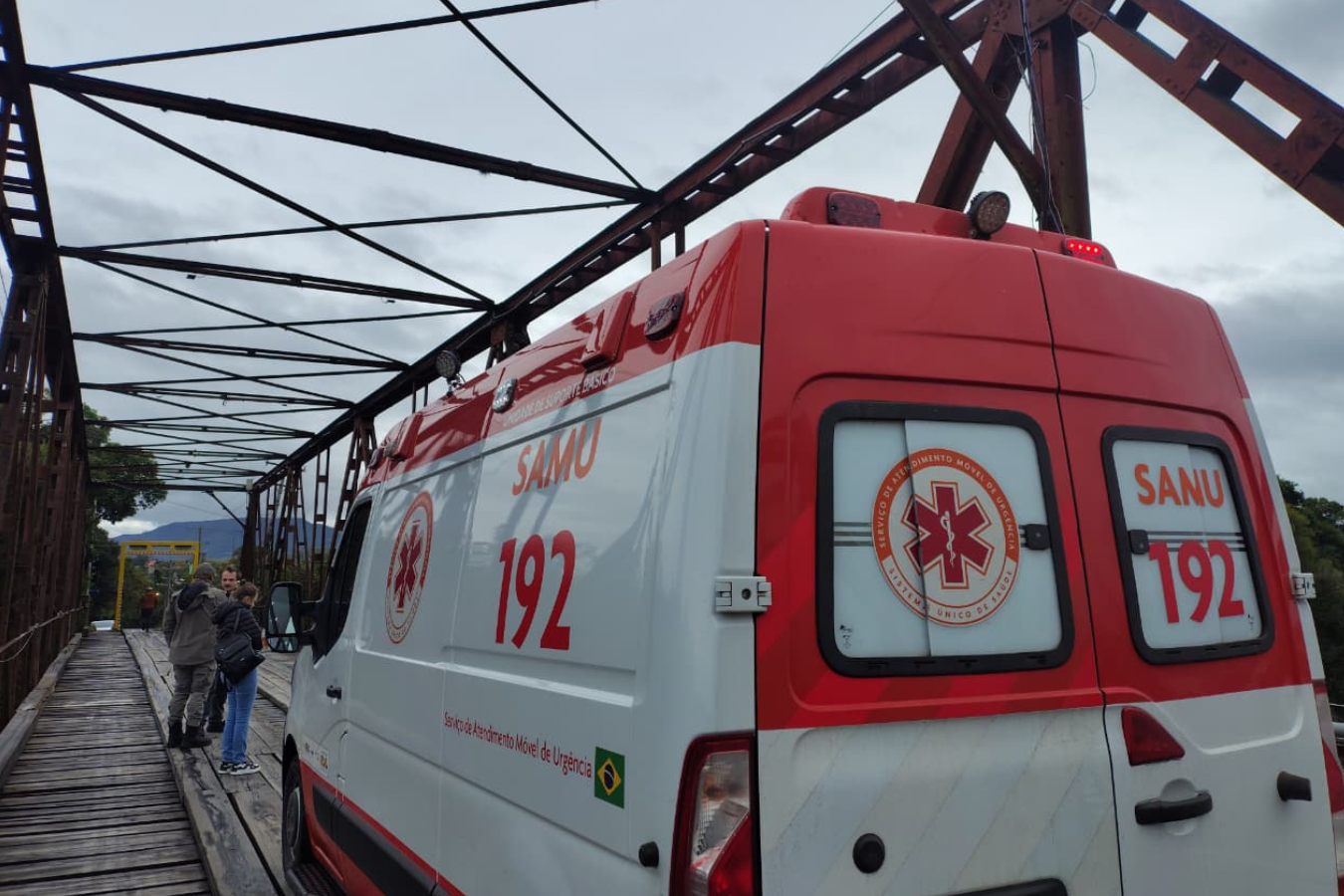 Motociclista fratura a perna em queda na Ponte de Ferro entre Lajeado e Arroio do Meio