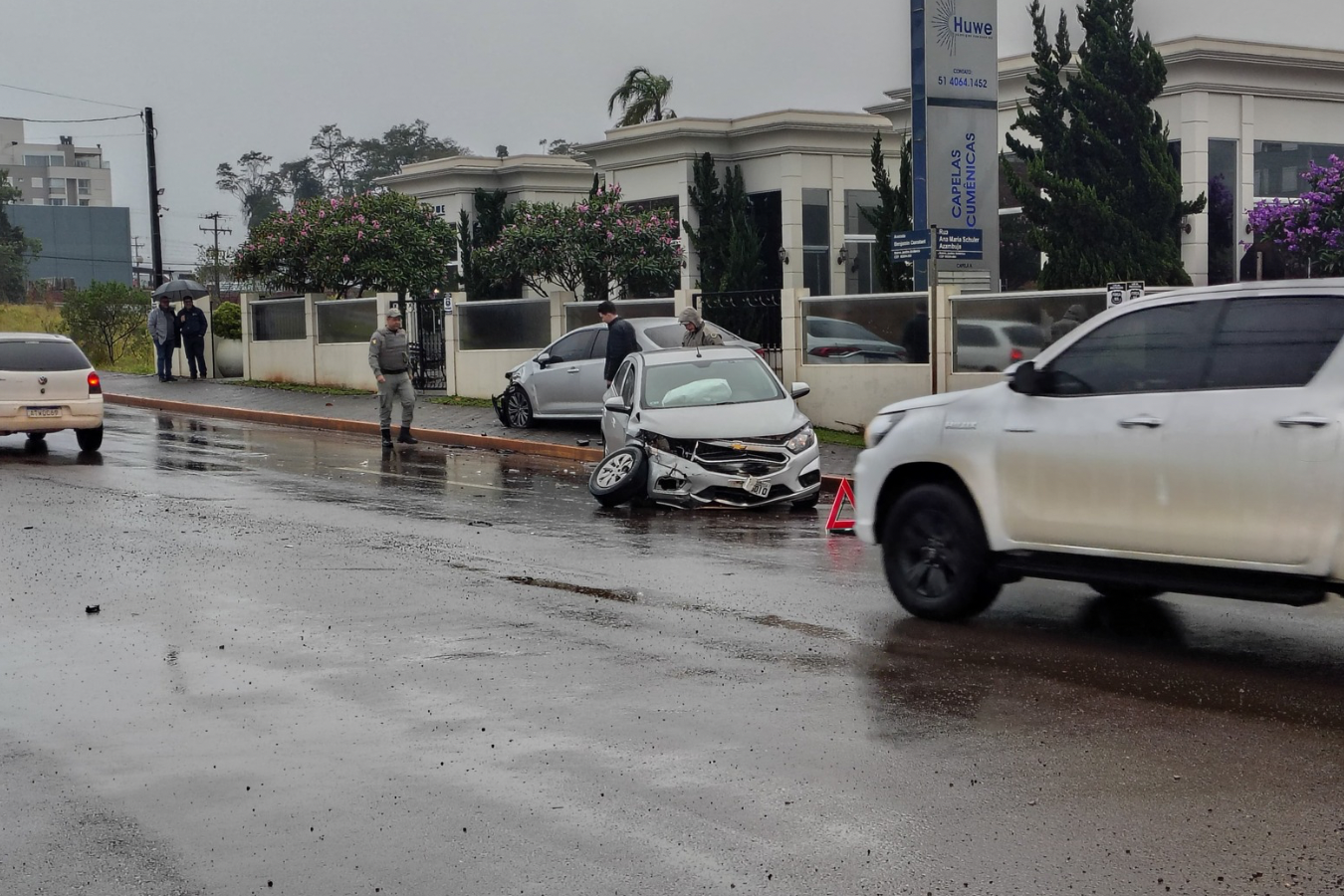 Colisão entre Corolla e Onix causa lentidão na Avenida Benjamin Constant, em Lajeado