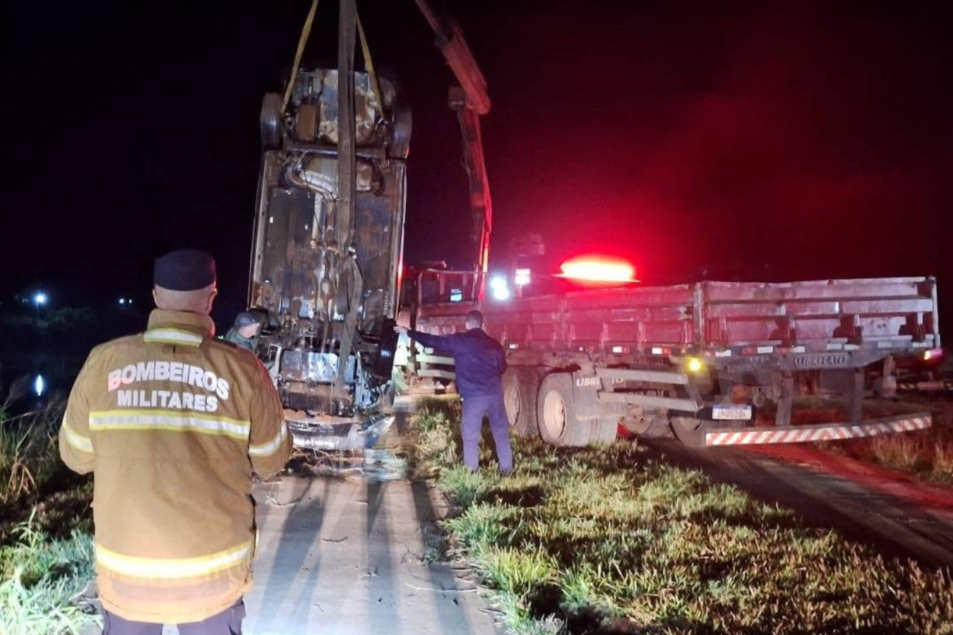Bombeiros e mergulhadores retiram carro do rio Forqueta após morte de idoso