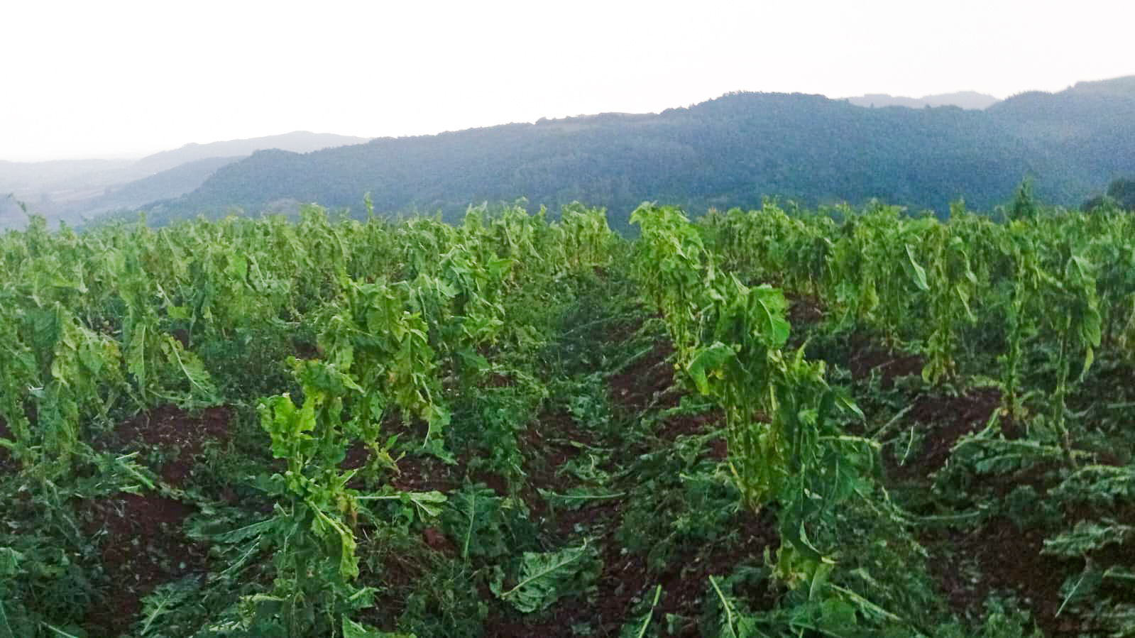 Conforme os agricultores, cerca de 30 mil pés de fumo foram destruídos em poucos minutos