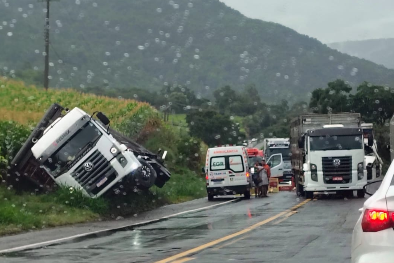 Condutor de Lajeado se envolve em tombamento e bloqueia trecho da RSC-453