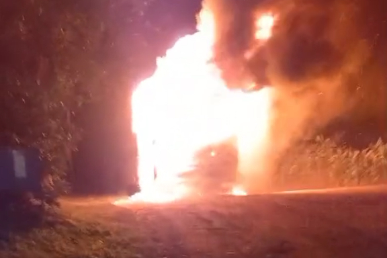 Incêndio consome ônibus e atinge rede elétrica em Mato Leitão