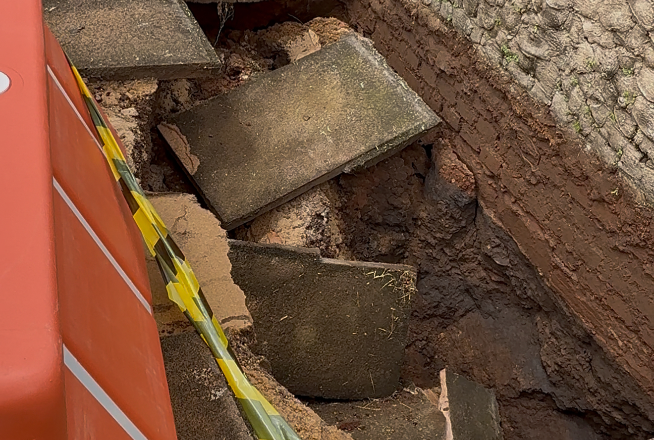 Um bueiro acabou cedendo na calçada do cruzamento das ruas 15 de Novembro com 9 de Fevereiro, em frente à autoelétrica do Marcelo, após as fortes chuvas registradas nos últimos dias. A estrutura já apresentava sinais de que a tampa e as lajes estavam soltas devido ao acúmulo de água na encanação, situação que foi comunicada à Prefeitura Municipal ainda nas primeiras horas da manhã, solicitando providências.